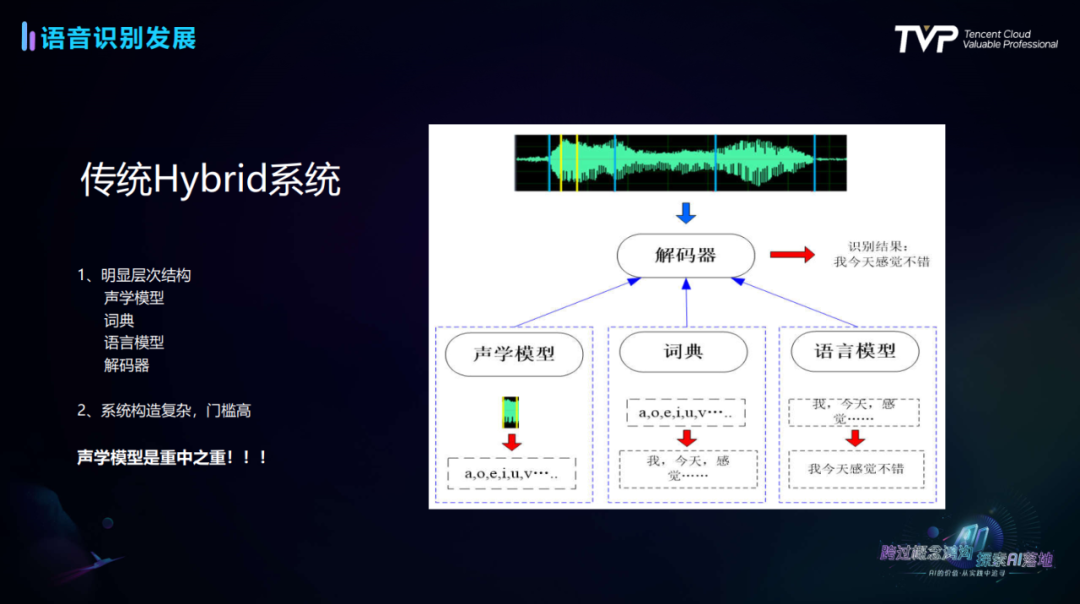 “语音识别技术领域没有完美的系统。Hybrid系统使用灵活,但整体拟合能力不如端到端系统;端到端系统数据整体建模能力强,但灵活度不及Hybrid系统。”