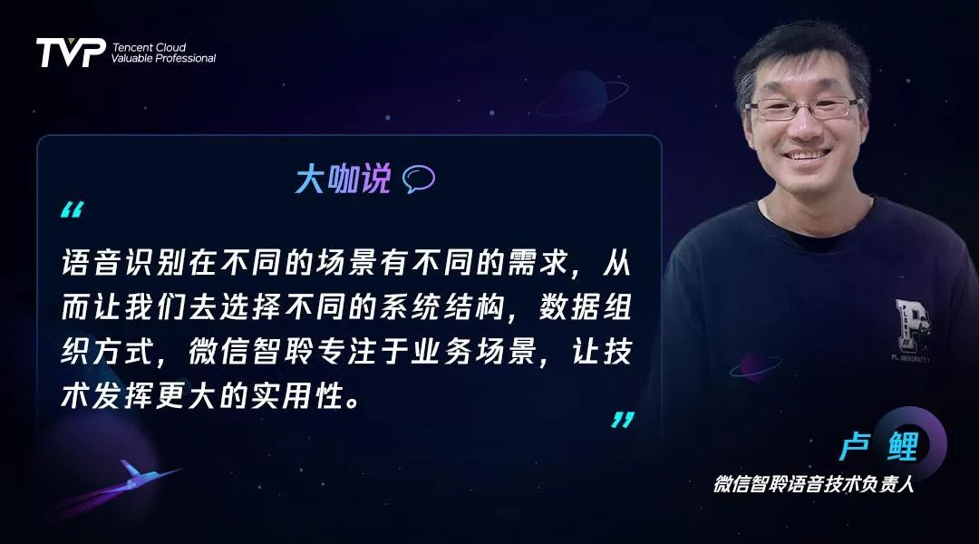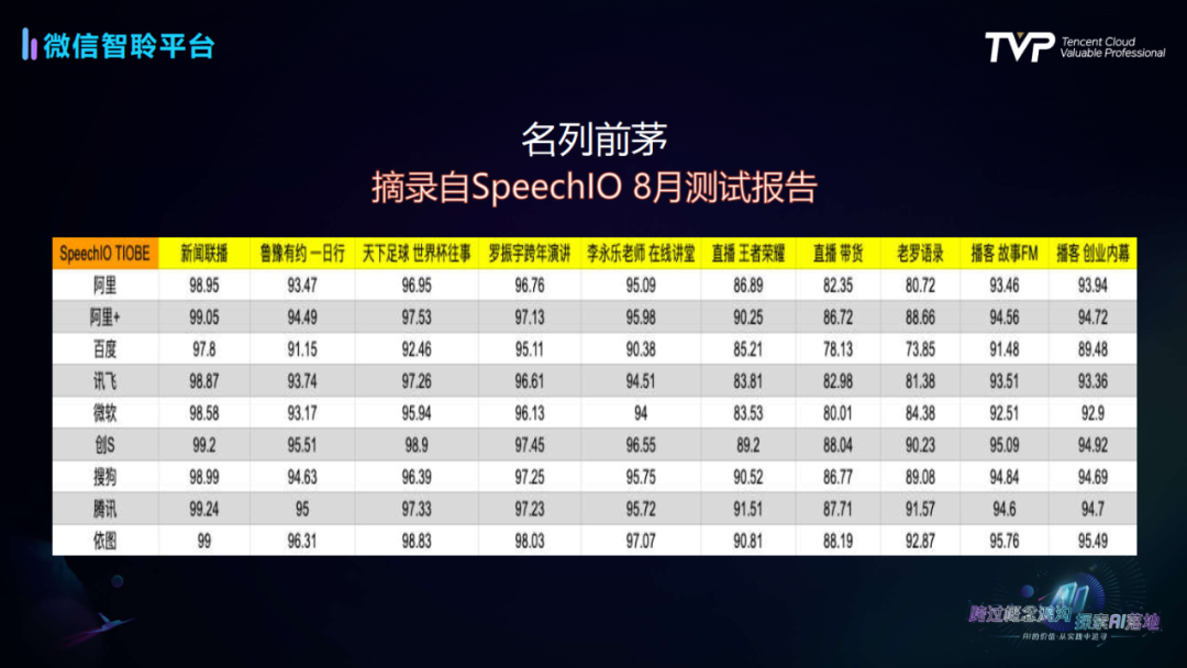 “微信智聆平台起步于2011年底,直到2017年才给自己取了个品牌的名字。当时是觉得效果做得不好,用户想吐槽的时候也没有具体对象。”卢鲤老师开玩笑着介绍了微信智聆平台的发展史,这个腾讯自主研发的语音技术平台,截至目前已经在C端、B端、G端等多个领域落地近百个产品,日请求量超30亿。在独立第三方机构SpeechIO的测试报告中名列前茅。