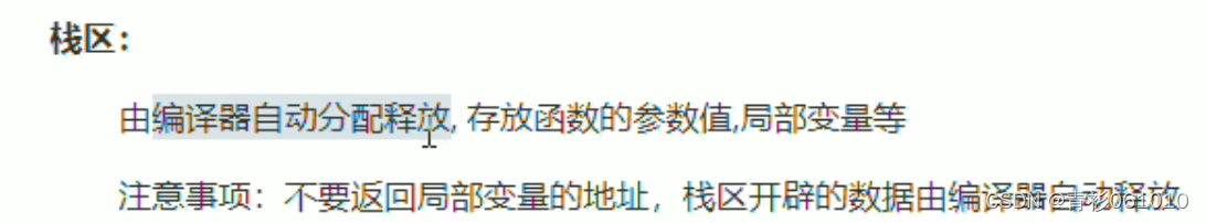 栈区:由编译器自动分配存放,存放函数的参数值,局部变量等