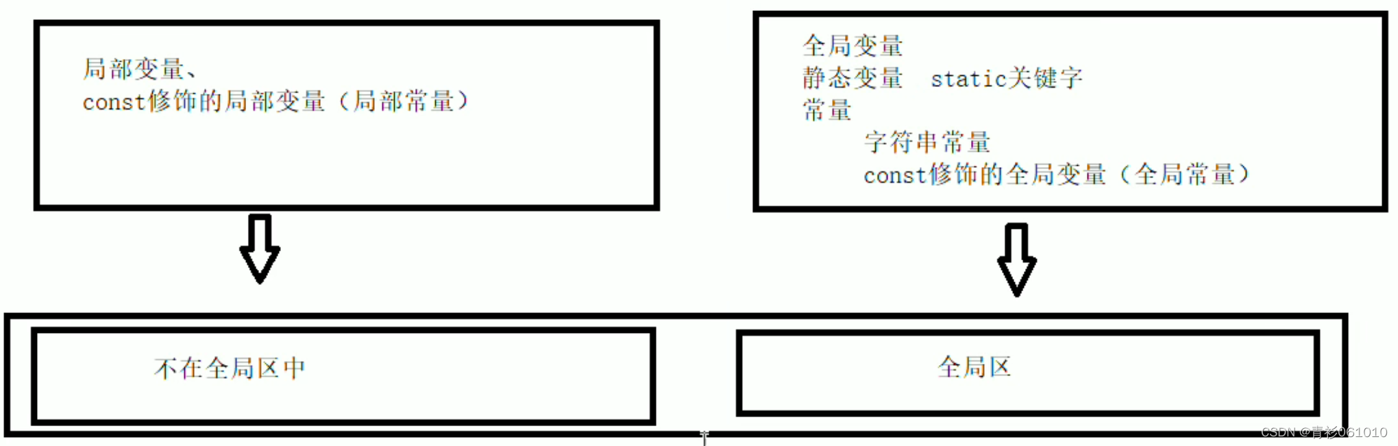 放在int main外面和函数外面的变量叫做全局变量 , 在int main 中或者函数中的变量叫做普通局部变量 ,在普通变量前边加上一个static的叫做静态变量 , 也放在全局区域中