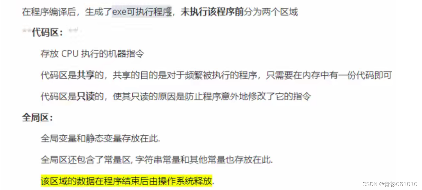 代码区:存放函数体的二进制代码,由操作系统进行管理的。