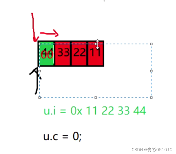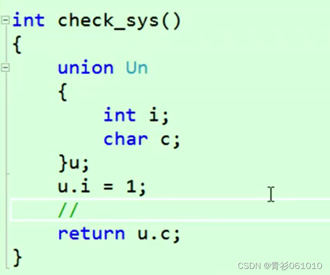 其中的c和i这两个变量是共用同一块内存的。un的大小为4。当然,不可能就是最大成员的大小,那样也过于简单了。