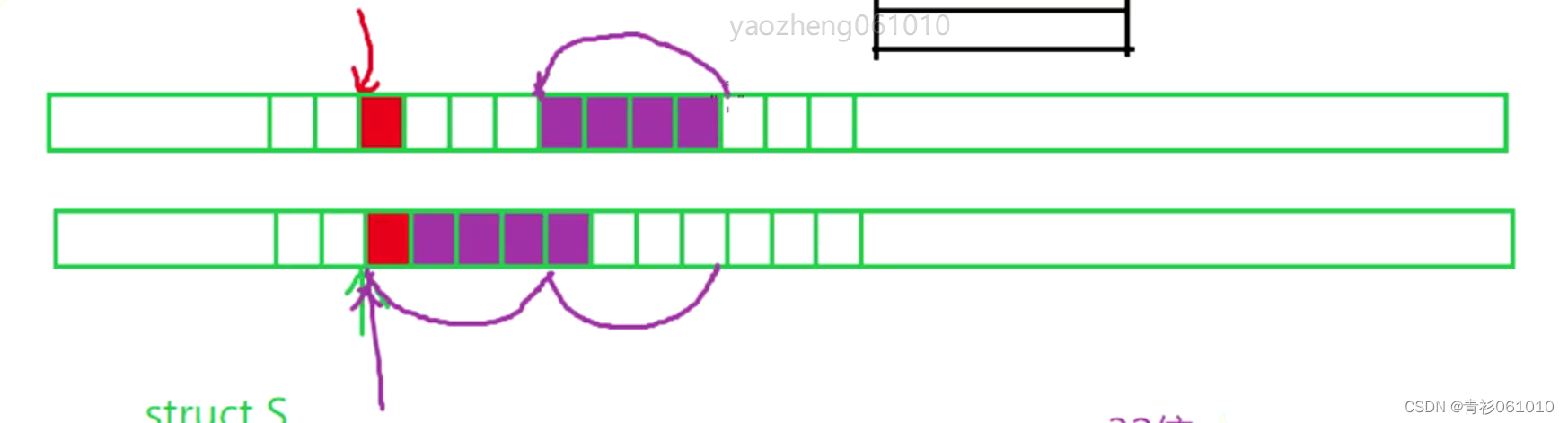 其次,内存的获取是一次四个字节,像图中第二种方式,那么获取一个int型就要获取两次,而第一种只需要一次,在性能上大大改善了。 总的来说:结构体内存的对其就是拿空间换取时间的做法。
