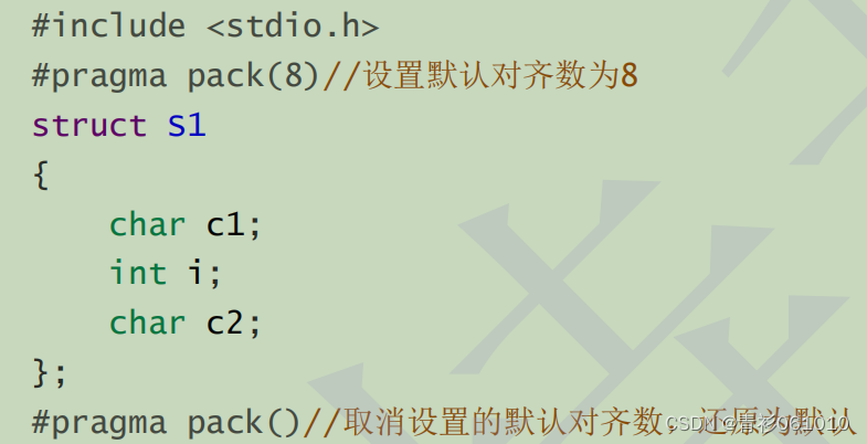 如图,#pragma pack(8)开始, #pragma pack()结束,这中间的句子中,就是修改了默认对齐数的。其中第一个括号中的数字就是默认对齐数。修改的数字应该为2的次方数,例如:1,2,4,8……