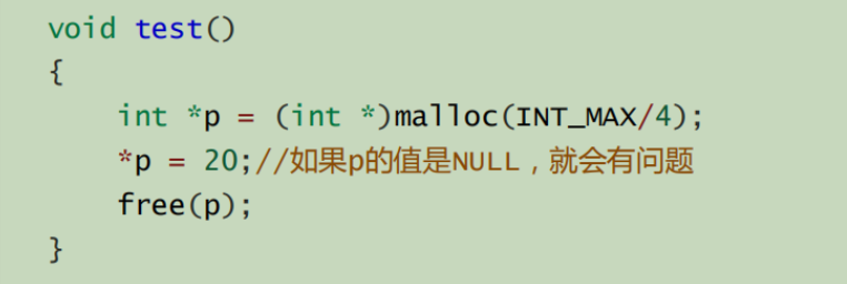 🎄🎄如果开辟失败,则返回一个NULL指针,因此malloc的返回值一定要做检查。