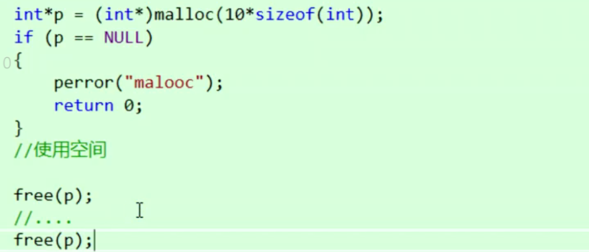 这里就就体现将指针置空的重要性了。 如果使用完将指针置空,再次free释放的时候编译器什么事情都不会干。