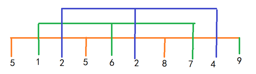 3、与后面一个间隔为gap的数比较。