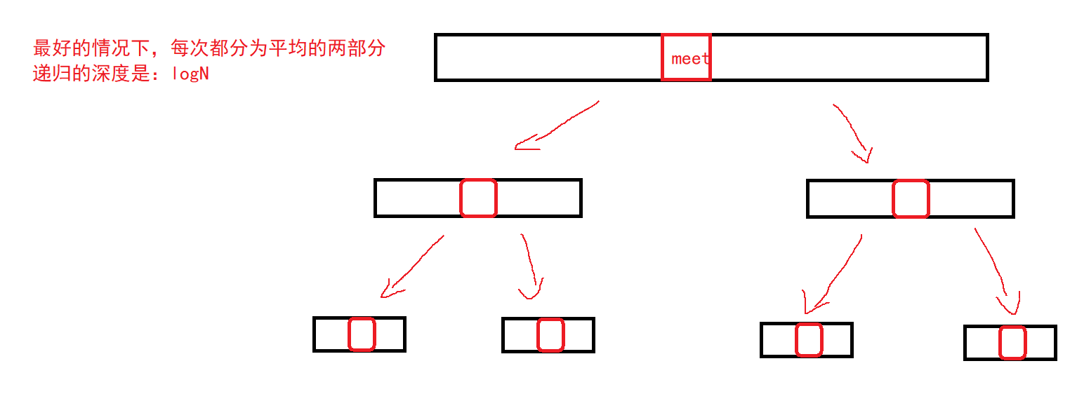 我们在上面分析中说到,最好的情况:每一次都分成平均的两部分。这样的的效率可以达到最高。