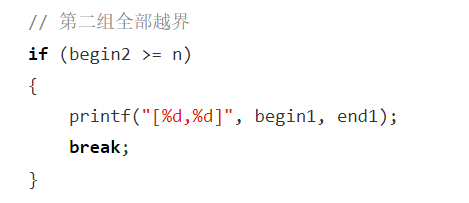 printf("[%d,%d][%d,%d] ", begin1, end1, begin2, end2);