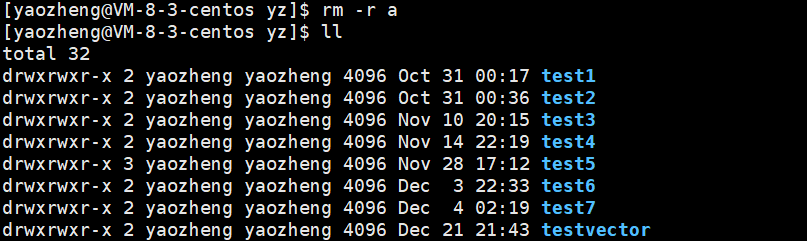这时我们需要用到 rm -r,r就是递归删除的意思,这样就递归把文件夹及其所有的文件都删除了。