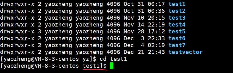 ls -R: 会递归式的展开子目录的文件。如图中展开目录test1和test2的文件。