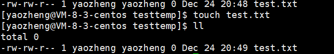 当我们 touch 我们想要的文件之后再 ll 查看就可以看到了。
