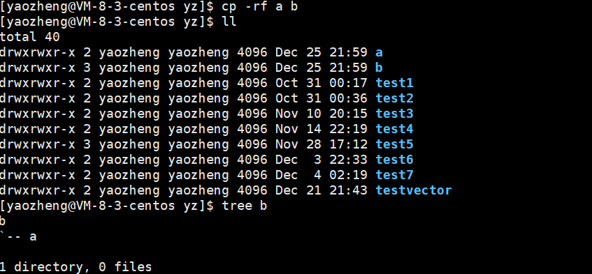将目录a拷贝到b中去,需要用到 -r 选项。