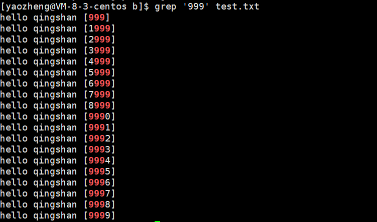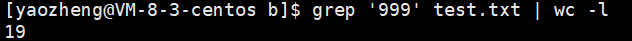 所以我们用管道加上wc -l 之后可以筛选出含 ‘999’的行数‘