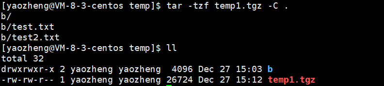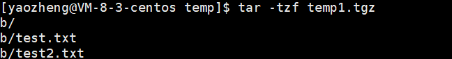 查看压缩包里的内容需要用到 -tzf 选项。-t 查看压缩包内容