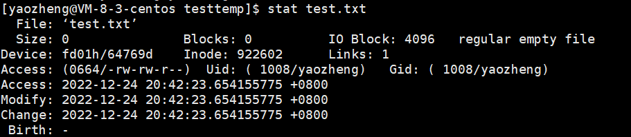 touch也可以用于更新文件的时间,可以看到两次文件的时间不一样了。