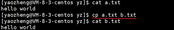 把文件 a.txt 中的内容拷贝到了 b.txt 中。