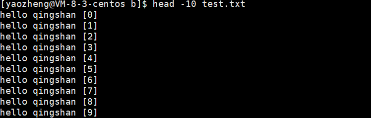 我们输入 head -10 test.txt 就可以查看文本的前10行内容了。