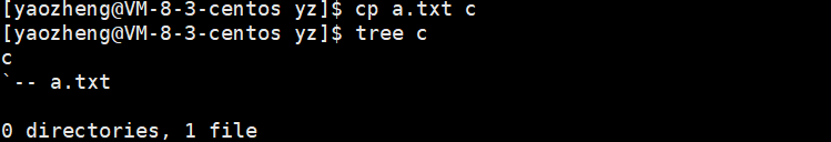 把 a.txt 拷贝到目录 c 中,这样c中也有了一个 a.txt 。