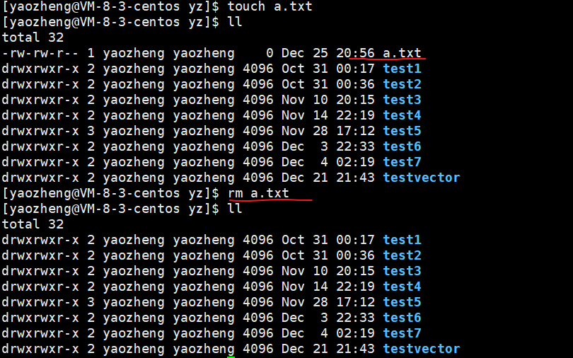 我们删除普通文件的话只需要使用 rm+文件名就好了。