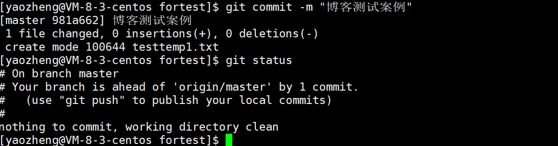 当我们完成 add 之后,我们还需要通过 commit 来提交到本地仓库。 我们输入:git commit -m “提交的日志内容” 我们在完成了 commit 在查看status会发现已经提交到了本地仓库。