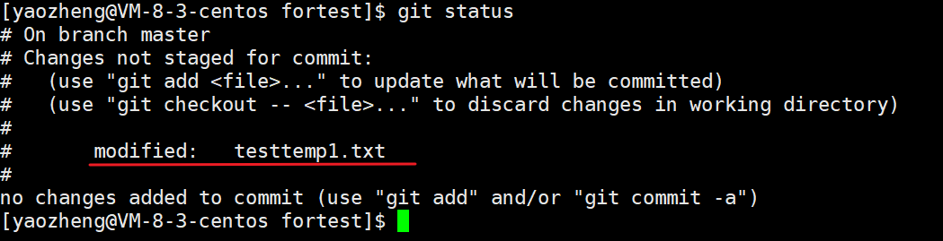 当我们更改了本地仓库的文件内容之后,我们需要将远程仓库和本地仓库进行同步。 我们此时查看status可以看到这里显示修改了文件
