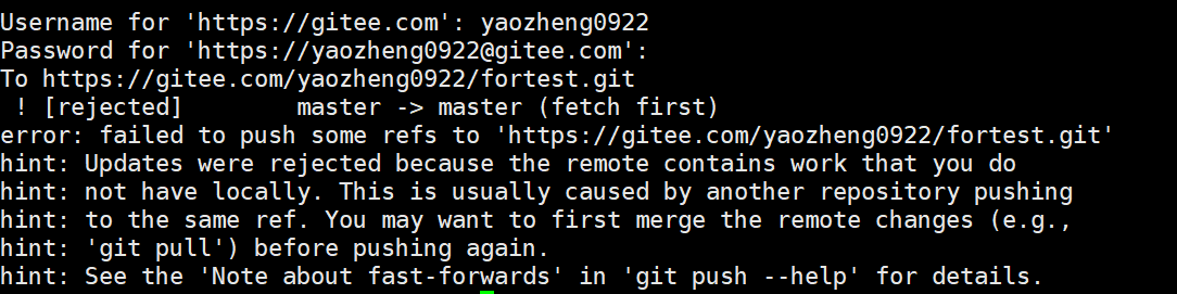 当我们修改了远程仓库之后,操作本地仓库提交文件的时候是会报错的(在add和commit完,push的时候)