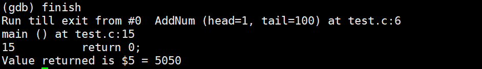 当我们进入某个函数,我们想直接把这个函数跑完,我们输入:finish
