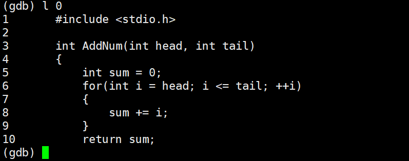 如果我们想要从第一行开始查看我们可以输入: l 1