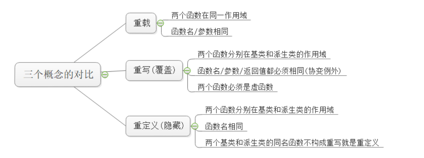 };派生类中有一个跟基类完全相同的虚函数(即派生类虚函数与基类虚函数的返回值类型、函数名字、参数列表完全相同) ,称子类的虚函数重写了基类的虚函数。