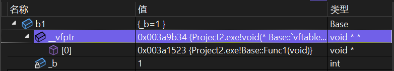 };由于我们通过Vs的监视窗口查看只能看到两个函数显示,所以我们需要手动打印函数地址来查看。