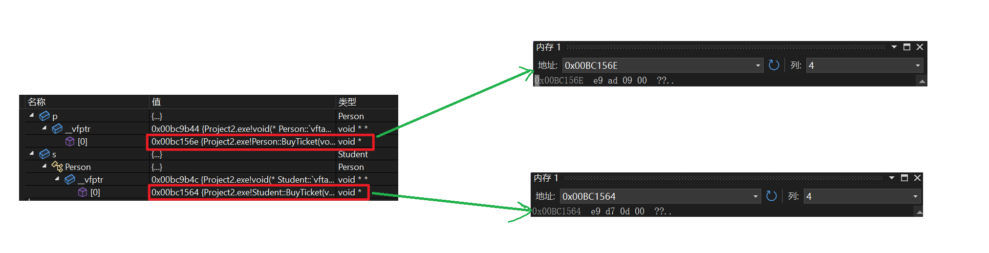 当我们用Person类对象调用的时候,是在Person的虚函数表中找到Person类的函数实现方式。而当我们用Student类对象调用的时候,派生类的内部会拷贝基类的虚表内容过来,但是由于我们已经重写了Person类虚表中的函数,所以调用的时候,我们找到的函数实现方法也已经发生了改变。