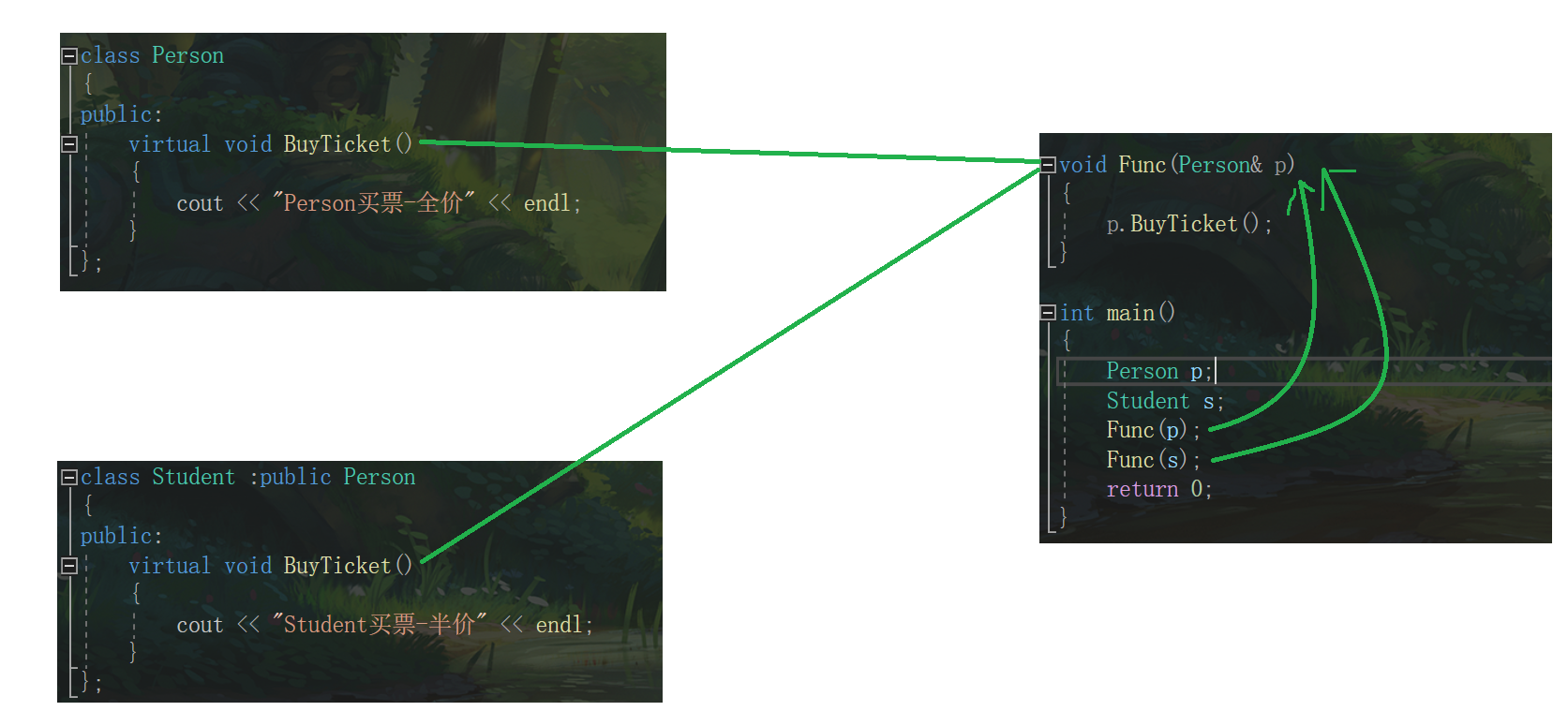 cout << "虚表:" << (void*)*(void**)&s1 << endl;我们再用文首的买票的例子: