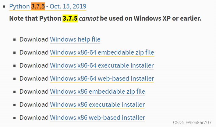(建议安装python旧版本较稳定,这里以Python3.7.5为例)