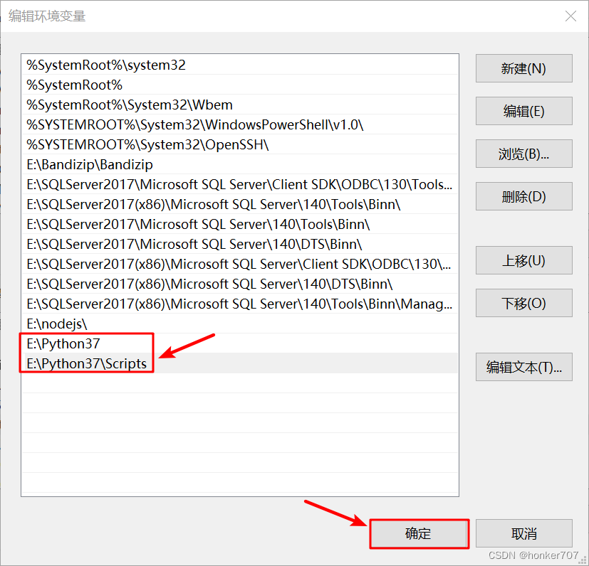 将自己的Python37路径和Python安装路径下的Scrpits路径添加进去