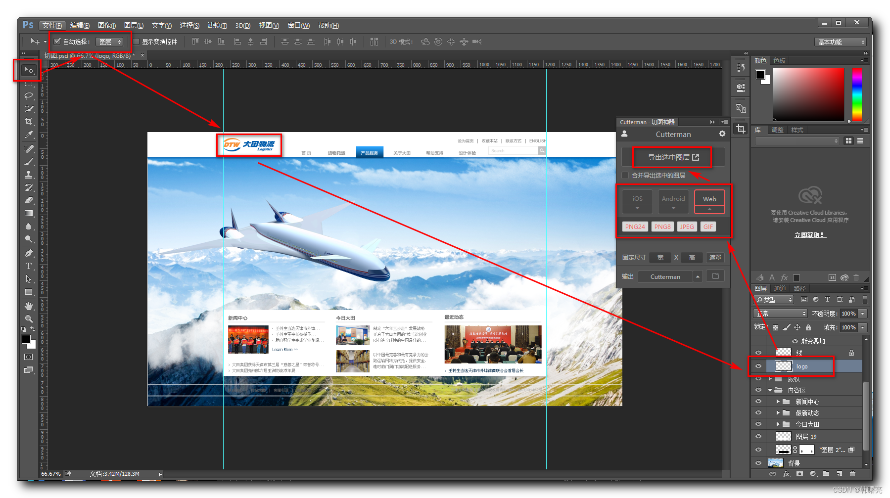 点击 页面中的 logo 图片 , 会自动选择该图层 ;
