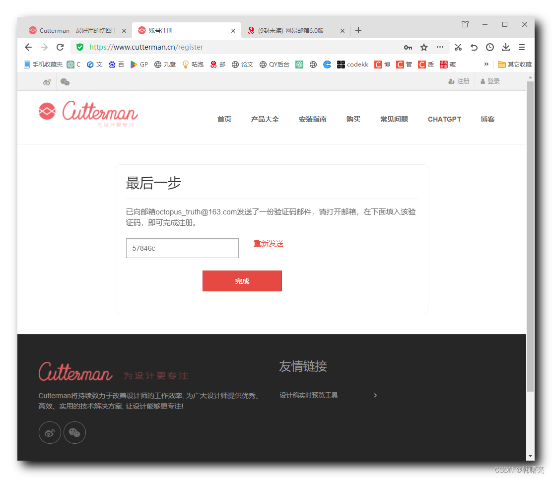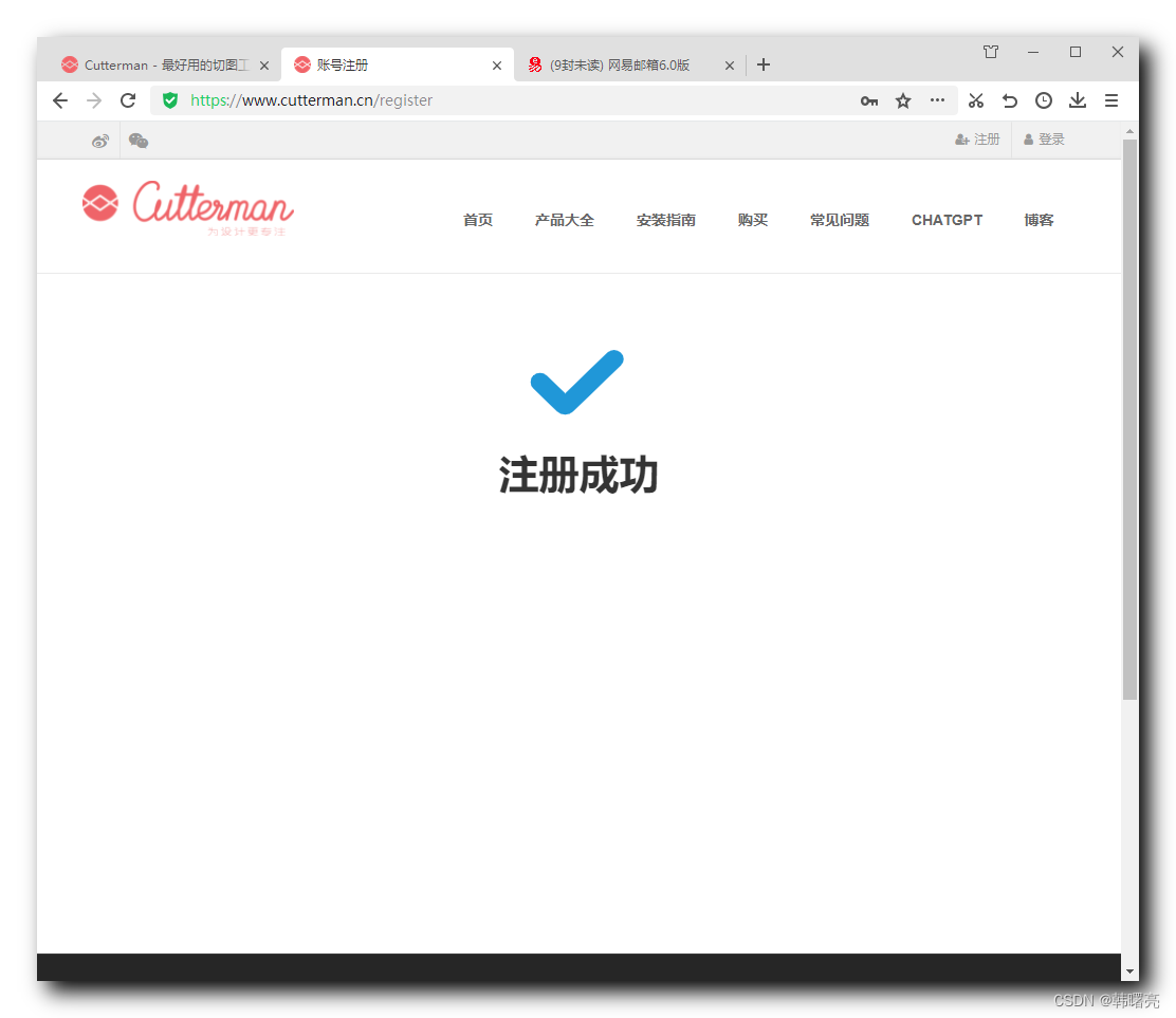 进入 https://www.cutterman.cn/register 页面 , 注册账号 ;