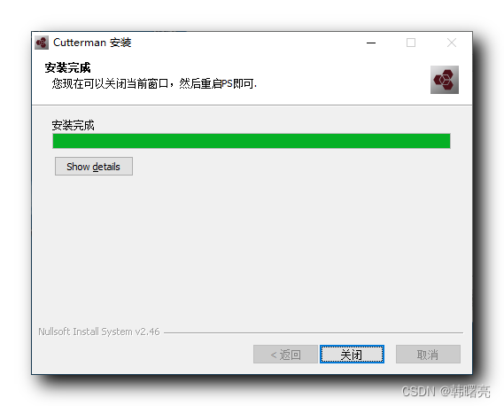 安装完成 ;