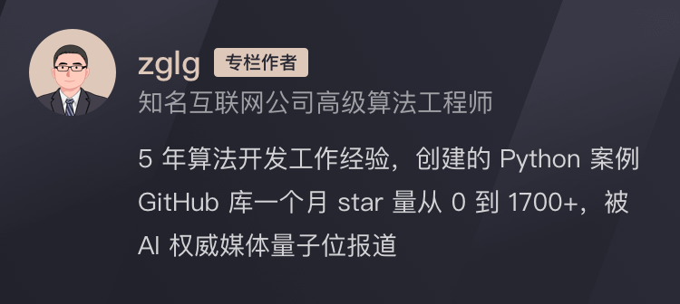 我和另一位在美国就读 AI 的博士后一起合力创作此专栏。我主要负责 Python 数据处理等模块,因为我本人在这块已经有 5 年多的工作经验,熟知业务中经常会遇到的问题有哪些,并且也提炼出一套更适合大部分开发者的解决问题的思维方案。