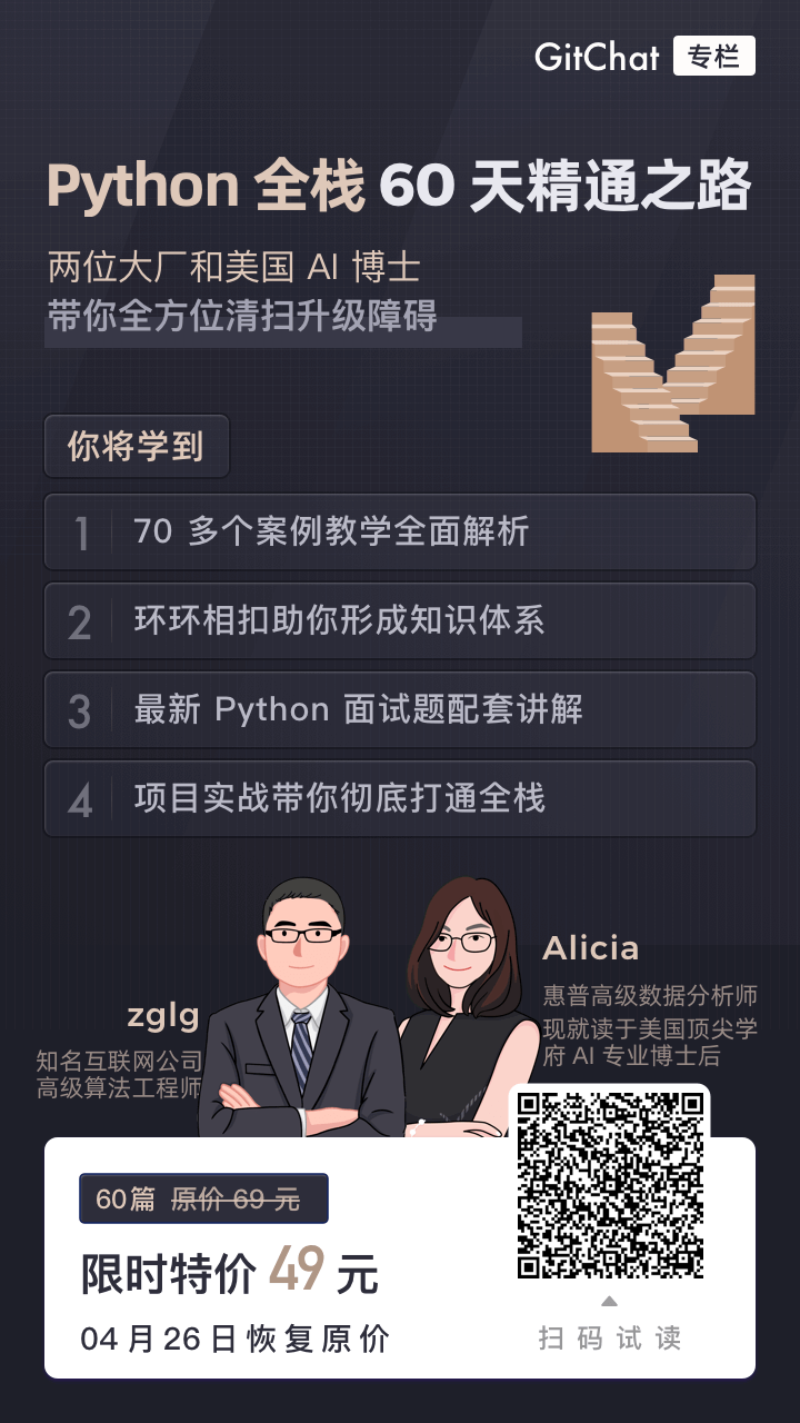 所以我提炼出过往五年多的工作经验,并和远在美国学府进修的 AI 博士后老师一起撰写了这个《Python 全栈 60 天精通之路》专栏。