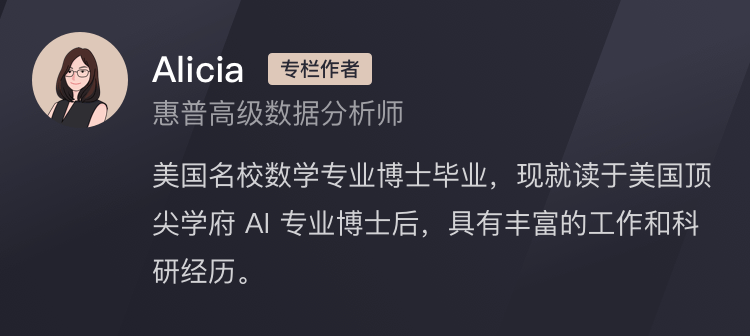 另一位作者 Alicia 目前正在美国进修 AI 博士后,她会负责 Python 机器学习算法这块。因为她本专业就是数学,后来深耕机器学习这方向,有着大量的科研和开发经验。