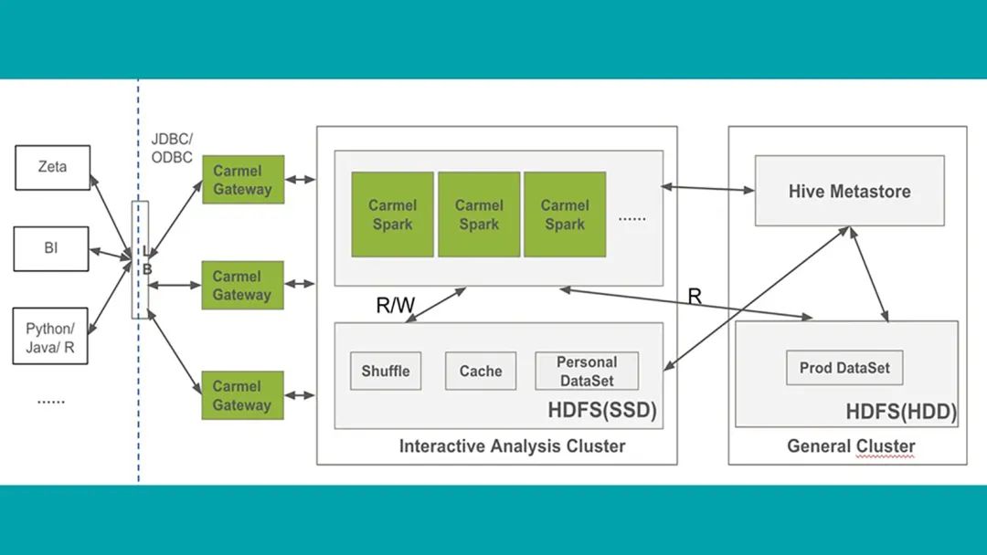 这个迁移过程中面临的一个挑战是设计一个能够反映之前平台的速度、稳定性和可扩展性的 SQL 执行引擎。定制的 Spark SQL 引擎有一个性能差距,尤其是 SQL 的大规模执行速度。举例来说,在旧工具上,有多个 Join 的查询可以在几秒内执行,而相同的查询在新的 SQL-on-Hadoop 引擎中可能要花费几分钟,尤其是在多个用户并发执行查询时。