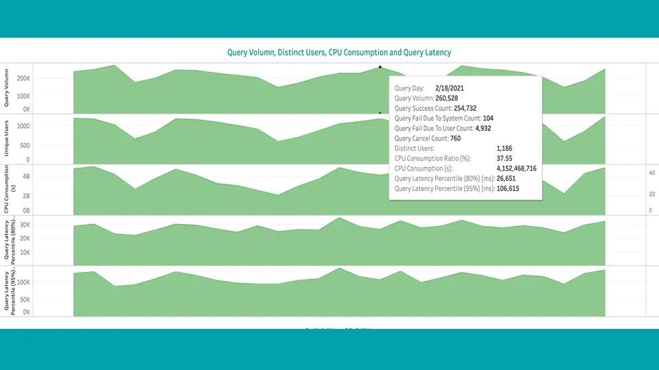 通过本文所述的优化和定制,新引擎已经投入生产,为 eBay 的所有交互查询分析流量提供服务。它每天有超过 1200 个不同的用户,有超过 26 万个查询在新平台上运行,80% 的 SQLs 在 27 秒或更短时间内得到回答,如下图 4 所示。