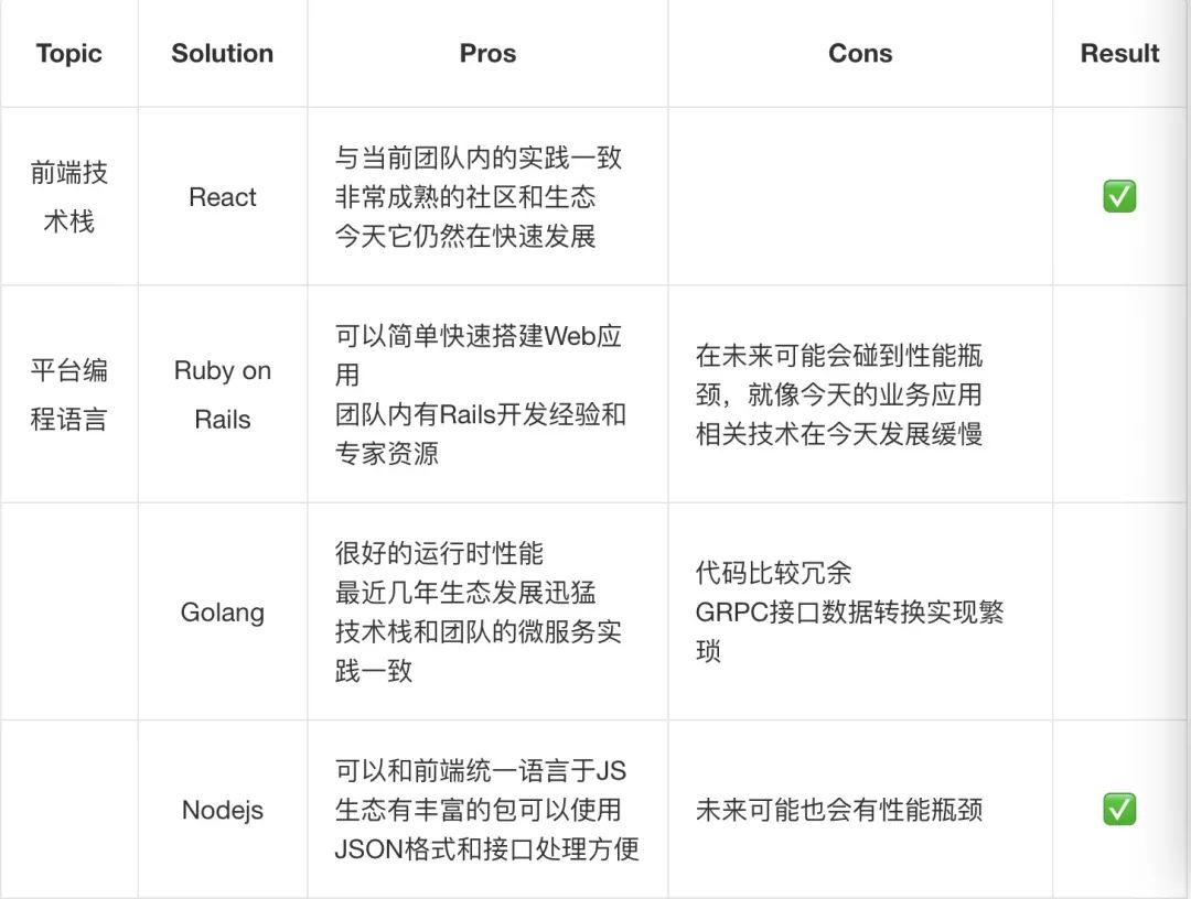 根据以上对比,基于对治理平台快速开发、稳定运行的要求,我们最终选用 React+Nodejs+Mysql+AWS RDS 的组合来进行开发构建。