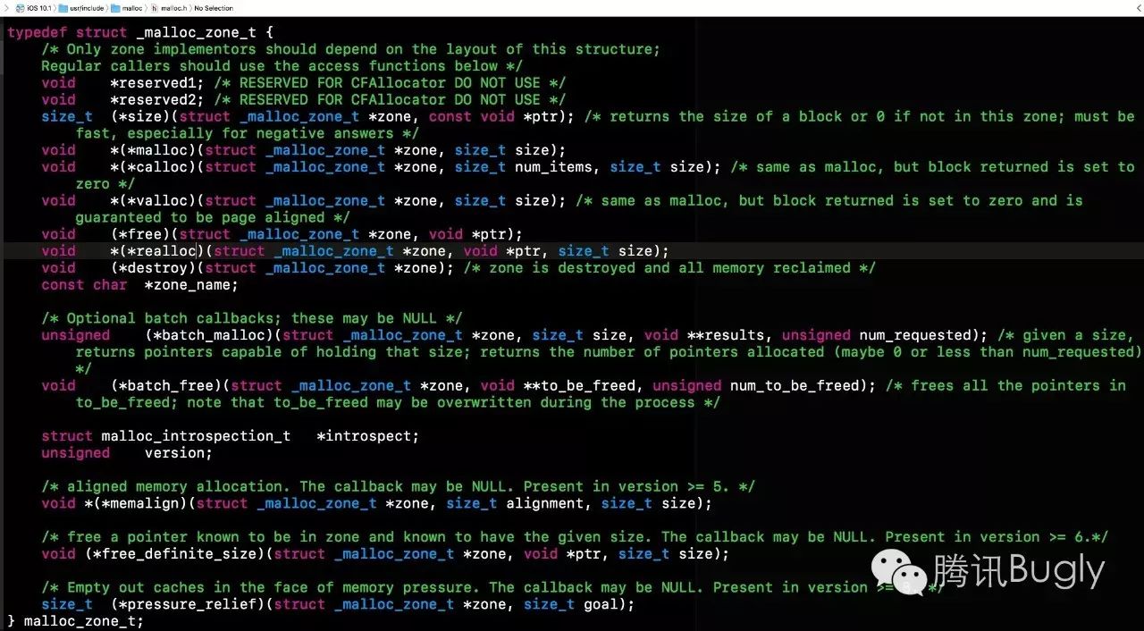 的源码可以在 https://opensource.apple.com/tarballs/libmalloc/ 找到。这里有多个版本,用otool找到iOS 9.3.5对应的源码是libmalloc-67.40.1.tar.gz。