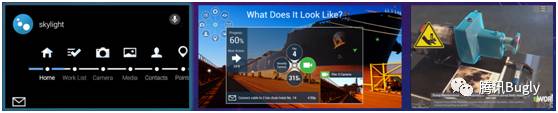 头戴式眼镜,用于工业领域,帮助工人提高工作效率,可以显示基本信息、待办事项、拍照、视频、沟通交流,标示任务等,使用AR对物体进行标示的沟通更易让人理解意图。