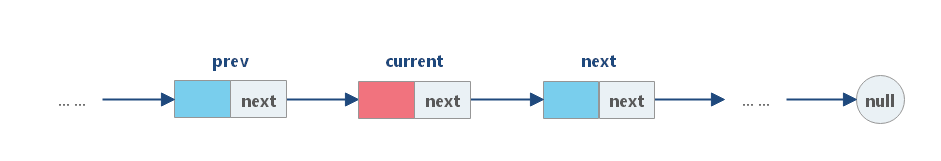 (2)链接 cur 与 prev 和 next ,其中 next 是 prev 原始的下一个节点;