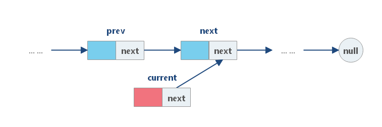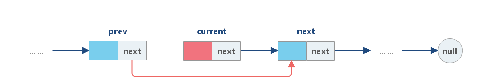 (2)将 cur 的 next 字段链接到 prev 的下一个结点 next ;