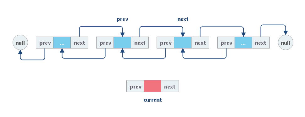 双链表以类似的方式工作,但 还有一个引用字段 ,称为 “prev” 字段。有了这个额外的字段,您就能够知道当前结点的前一个结点。
