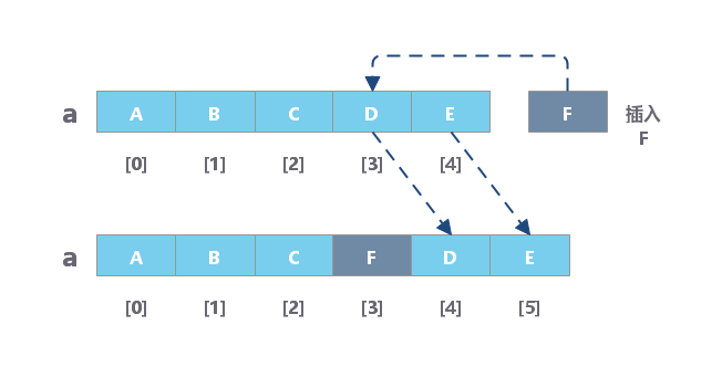 在上面的例子中,数组 a 中有 5 个元素。 也就是说 ,a 的长度是 6 。我们可以使用 a [0] 来表示数组中的第一个元素。因此,a [0] = A 。类似地,a [1] = B,a [2] = C,依此类推。